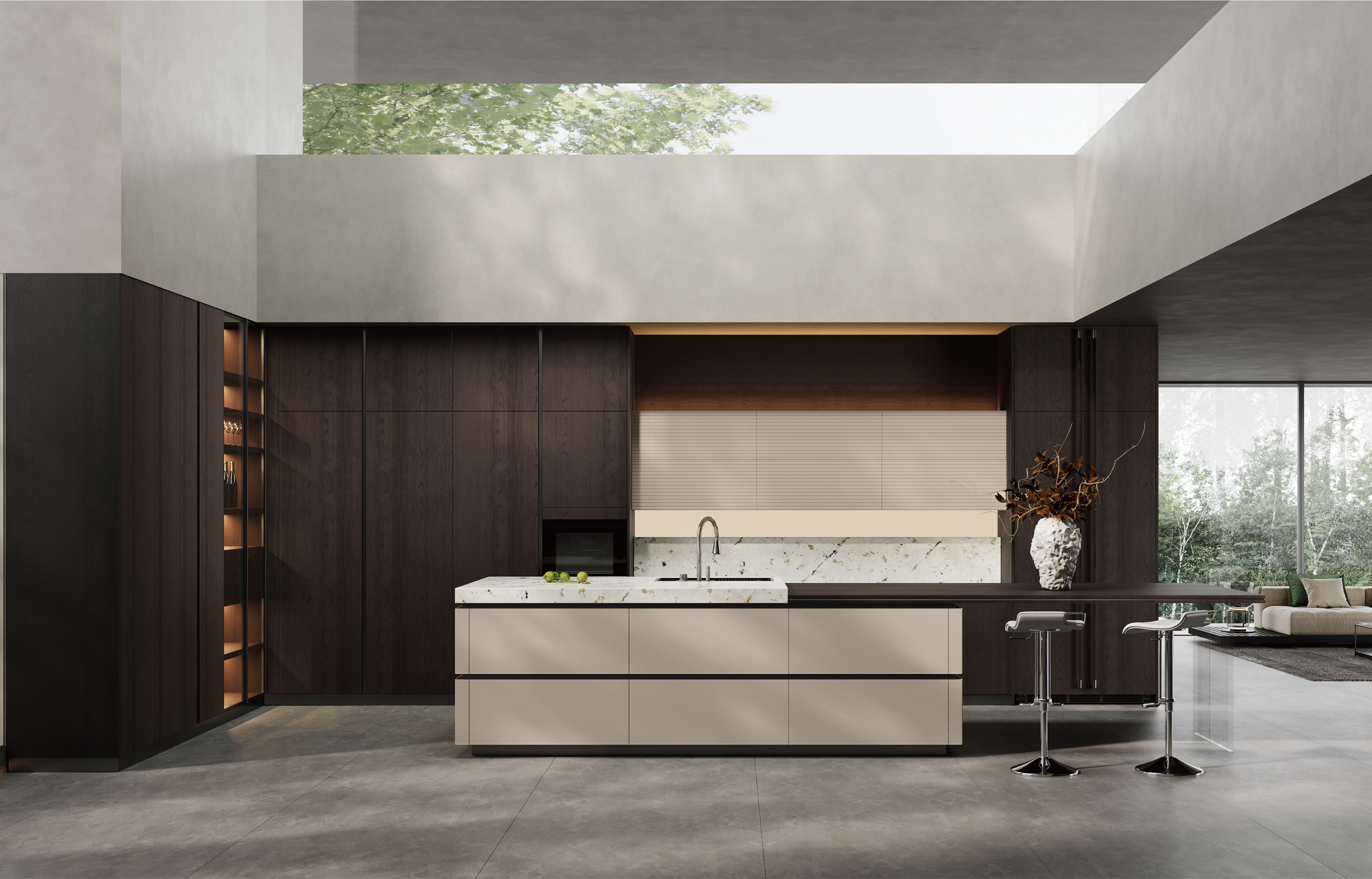 通过永利集团厨柜量体裁柜,定制出适合主厨下厨的烹饪区和洗涤区的舒适高度。